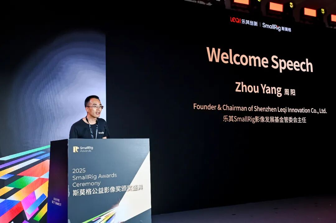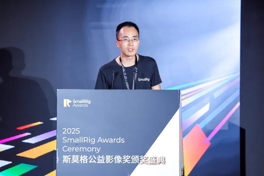 “斯莫格奖属于所有相信影像力量、愿意用镜头改变世界的人们。”乐其创新SmallRig创始人兼CEO、乐其SmallRig影像发展基金管委会主任周阳在颁奖盛典开幕致辞中介绍奖项的诞生源于一次偶然的观影经历。2024年春天,他在从美国返航的飞机上偶然看到了纪录片《以火书写》(Writing with Fire)深受感动。影片讲述了一位印度女性坚持通过自媒体为被黑社会抢占土地的农民发声,揭露选举中的不公。尽管面临家庭歧视、社会压力甚至生命威胁,她依然坚持用影像发声,记录真实。这份勇气深深打动了周阳,让他重新思考影像的价值。他表示,乐其创新SmallRig始终在幕后为影像创作者提供优质产品与解决方案,但真正打动人心的,是用户使用这些工具去记录生活、推动社会的改变。他认为,企业不应止于“见物”,更应“见人”。正是这种思考,让乐其创新SmallRig走到台前设立了斯莫格公益影像奖,并面向全球发现和奖励优质的公益内容和优秀的创作者,希望通过持续的行动推动公益影像内容的创作、传播,分享公益的理念和善意善行。