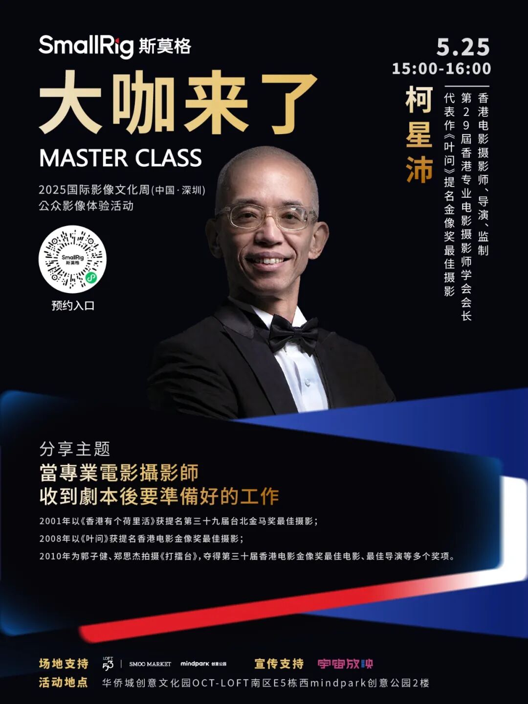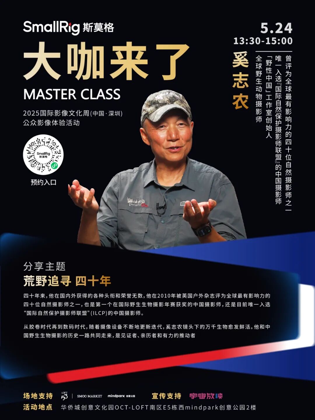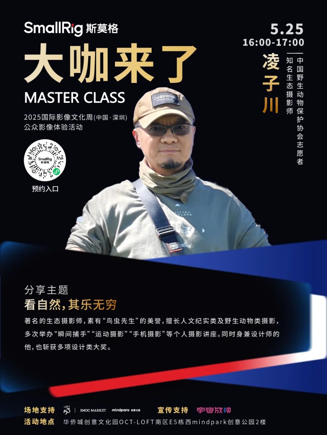 以“影像浪潮・时代进程”为主题的2025国际影像文化周(中国·深圳)于5月23日-25日举办。作为国际影像文化周的三大核心板块之一,5月24日至25日,公众影像体验活动《大咖来了》迎来多场重量级影像大咖分享活动。